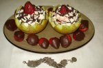 Blatul: Galbenusurile cu zaharul le-am mixat pana au devenit o spuma. Ciocolata am razuit-o pe razuitoarea mica si apoi am incorporat-o in galbenusuri. Faina am amestecat-o cu praful de copt si zaharul vanilat si le-am omogenizat impreuna cu galbenusurile si ciocolata. Albusurile batute spuma...