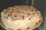 Blatul: Se bat albusurile spuma cu un praf de sare, se adauga zaharul si se bate in continuare pana se intareste. Se adauga galbenusurile, pe rand si la final faina. Se coace intr-o forma de tarta dar un pic mai inalta. Este gata cand trece testul scobitorii. Se lasa la racit Crema:...