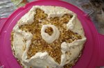 Blatul: Se freaca galbenusurile cu zaharul pana se topeste,se adauga nuca si faina,apoi albusurile batute spuma tare.Se toarna in forma de tort compozitia,forma unsa si tapetata cu faina sau cu hartie de copt.Se baga la cuptorul incins in prealabil,este gata cand trece testul scobitorii.Se...