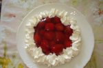Capsunile se spala si se lasa la scurs. Se bat albusurile spuma, cu un praf de sare, apoi se adauga zaharul si se bate ca la bezea. Alegem capsunile cele mai frumoase si le pastram pentru decor, restul le taiem in bucati mai mici si le amestecam cu albusurile si jumatate din frisca. Le asezam pe...
