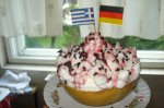 Albusurile cu sare, se bat spuma tare, se adauga zaharul. Smantana de frisca se bate tare se adauga zaharul vanilat. Fructele se spala si se scurg. Apoi intr-o cupa,pahar,castronel ce aveti la indemana faceti un amestec din toate cele de mai sus Decorati in functie de inspiratie