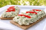 Taiem ouale cubulete mici, tocam ceapa si verdeturile si apoi le amestecam cu branza, smantana si iaurt. Condimentam cu sare, piper, ardei iute, oregano, sau orice alte condimente care va plac si se potrivesc. Servim cu Panite si decoram cu bucatele mici de ardei rosu.