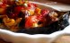 luam vinetele , le spalam, le taiem pe jumatate pe lung.Cu o lingura scobim miezul vinetelor si il tocam separat intr-un vas.In vas punem si ardeii taiati fasiute si usturoiul tocat feliute.Incingem putin ulei si punem intai usturoiul ca sa dea gust uleiului , adaugam carnita de pui fasiute...