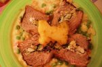 Se taia patrate din carnea de vita se bat cu ciocanul de snitzele, se sareaza si se pipereaza putin.Se toaca verdeata, feliile de dovlecel, pieptul de pui si ceapa rosie cubulete mici, se amesteca toate si se pune cu lingura din amestec in mijlocul patrateleor de carne de vita.Se ruleaza si se...