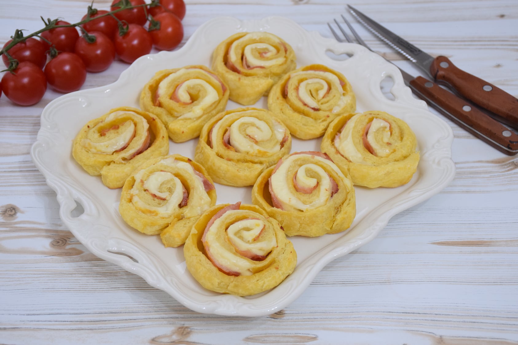 Aperitiv trandafiri cu cascaval si sunca