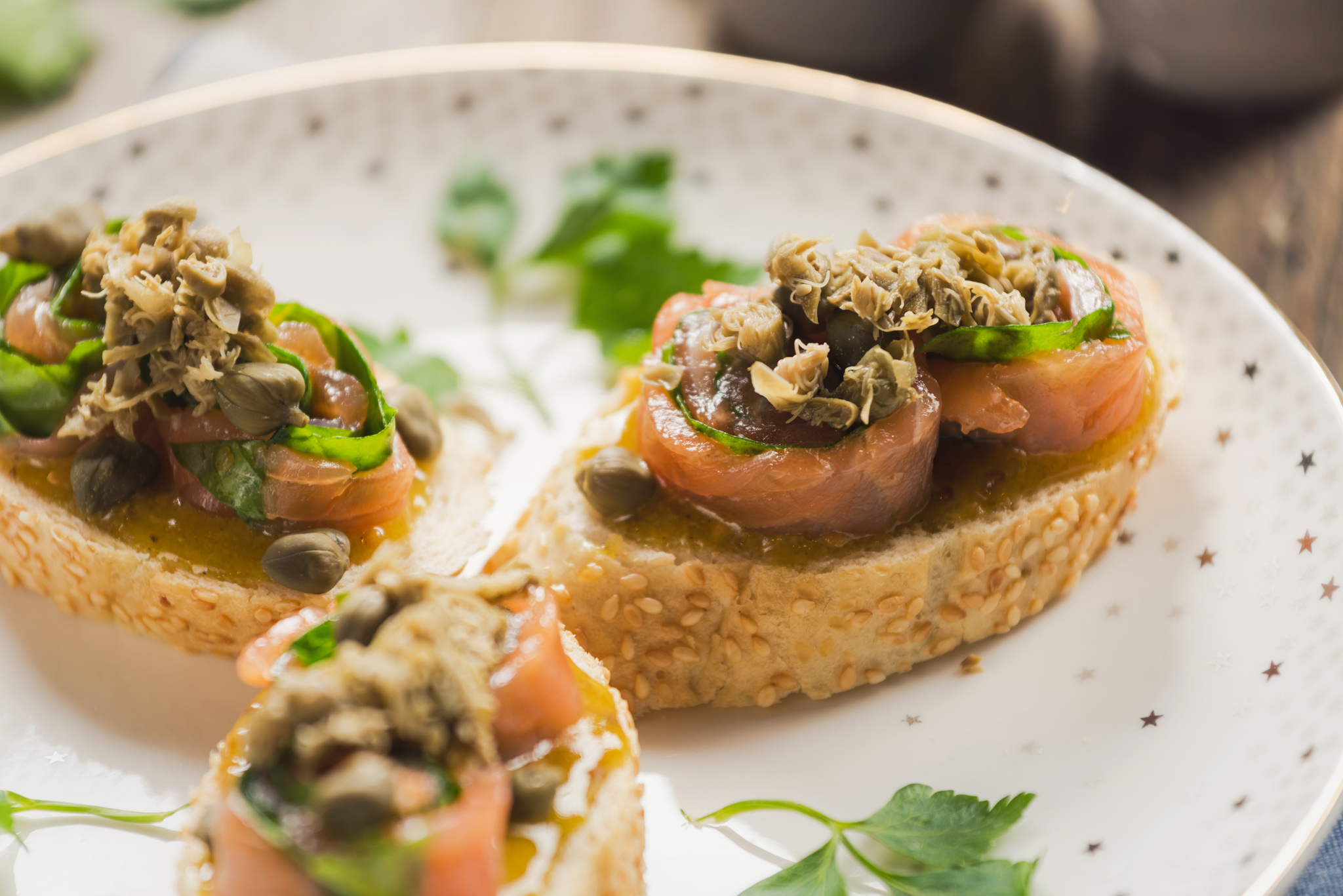 Aperitive Tartine cu somon afumat si spanac