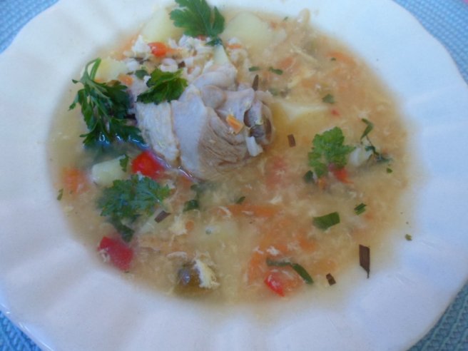 Ciorba de legume cu carne de pui
