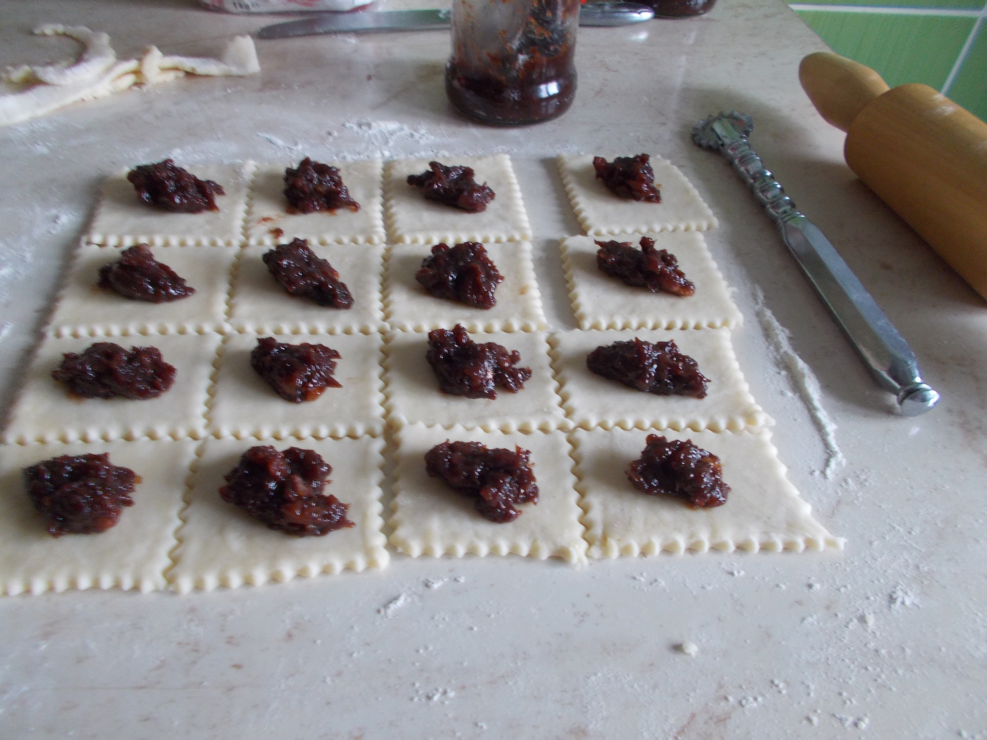 Desert cornulete fragede, cu gem de prune cu nuci-16