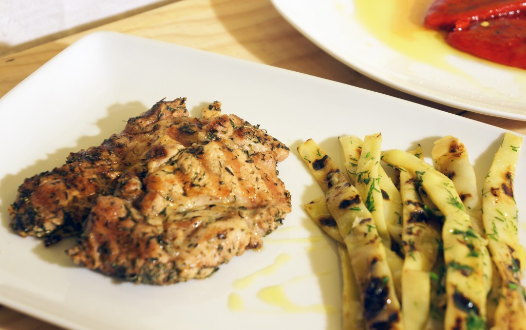 Friptură şi păstăi de fasole la grătar