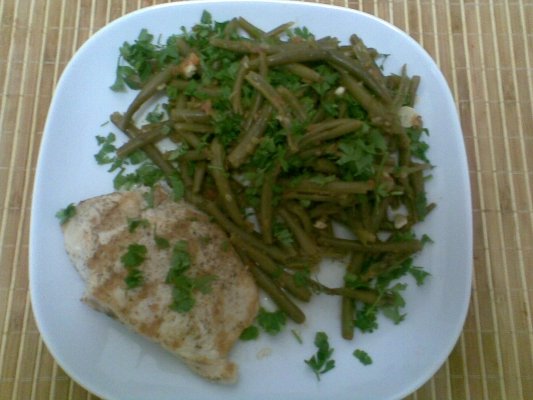 Piept de pui la gratar cu fasole verde rasol