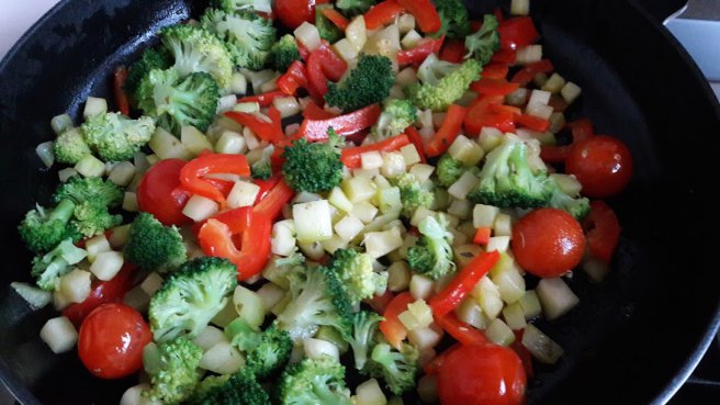 Piept de rata cu legume la tigaie
