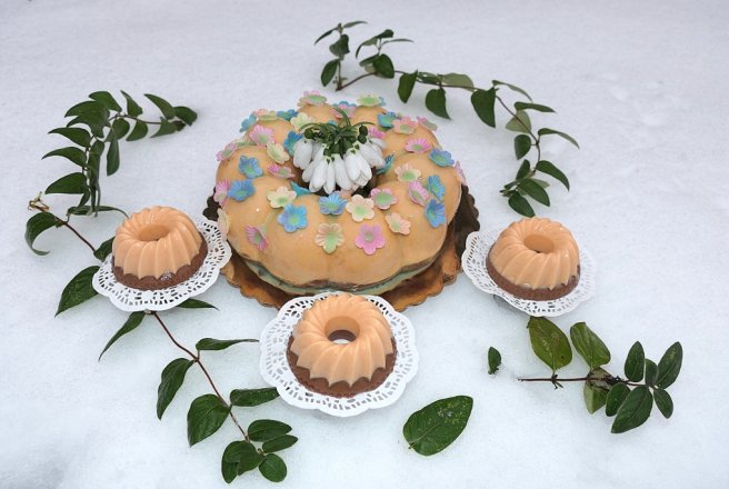 Acest tort l-am facut pentru sora mea cea mica, Minodora, pe 2 martie este ziua ei, implineste cinci plus unu ani si ii doresc tot binele din lume. L-am facut cu ce-i place ei si am zis sa il decorez cu floricele din foi de napolitana ca sa vesteasca si Primavara. Am folosit o forma de silicon mai mare si altele mai mici, din lene sa cantaresc exact cam cat intra in forma mare pe care am folosit-o, am apelat la alternativa- fac mai mult mousse si fac si monoportii. Aici fiecare poate sa se joace cu orice forma de silicon pe care o are in dotare sau poate sa nu faca reteta asta, sunt o multime de variante in lumea mare. La multi ani, Minodoara !